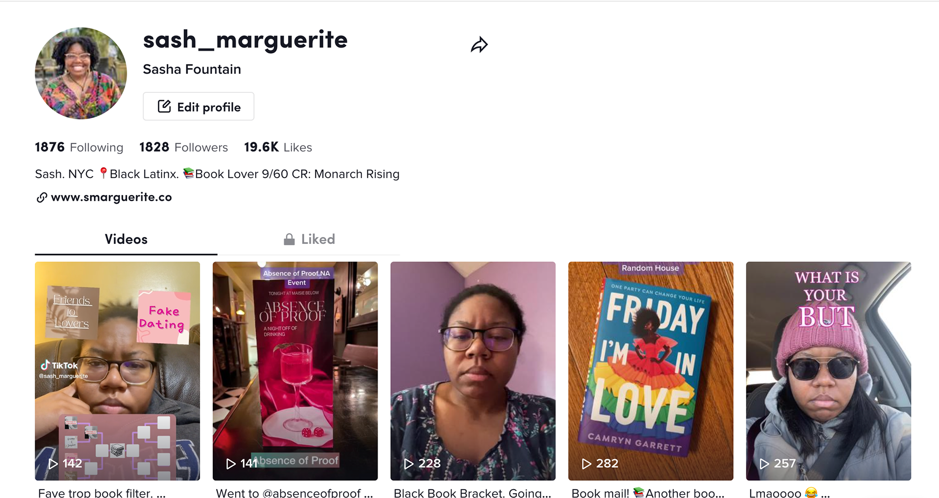 In November of 2022, I joined BookTok. I post book hauls, mail, and reviews on my TikTok profile. I do have some personal posts mixed into that account as well. The image below is a link to my profile.